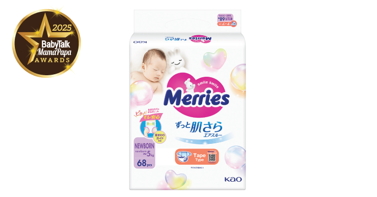 Merries Super Premium Tape Baby Diapers is the BabyTalk & MamaPapa Readers’ Choice Awards 2025 Winner for Ultra Gentle Newborn Baby Tape Diaper.