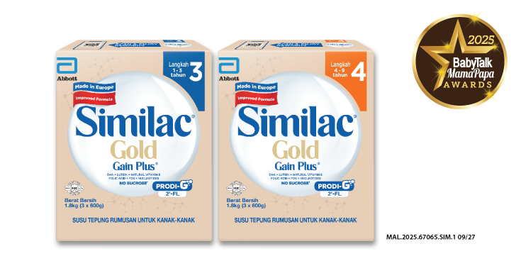 Similac® Gold Gain Plus® Step 3 & 4 is the BabyTalk & MamaPapa Readers’ Choice Awards 2025 Winner for Growing Up Milk Formula (Premium).